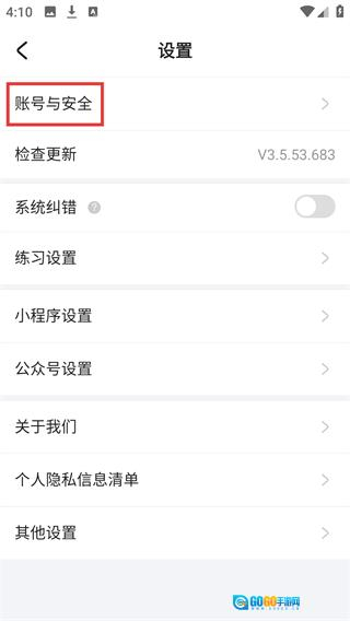 3、进入【设置】页面后,找到【账号与安全】选项并点击,进入对应的账号安全相关设置界面。