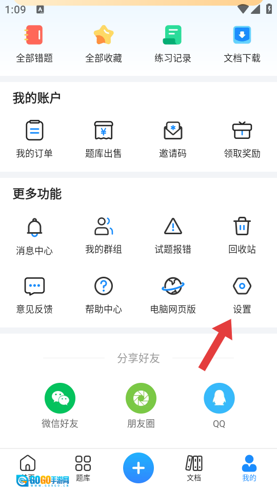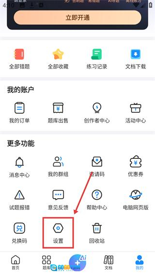 2、进入【我的】页面后,在【更多功能】板块中找到【设置】按钮并点击,进入设置界面。