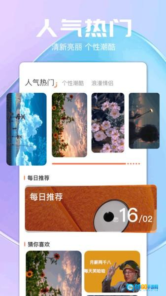 1、在首页或精选专区,平台会推荐一系列色彩斑斓的抽象艺术、温馨日系、魅力肖像等多彩壁纸,并设有人气热门板块呈现潮流炫酷作品。