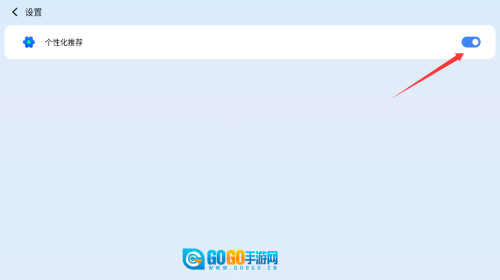 4、在设置界面,点击开关开启个性化推荐。