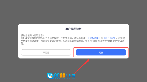 1、点击同意按钮,授权隐私协议继续使用。