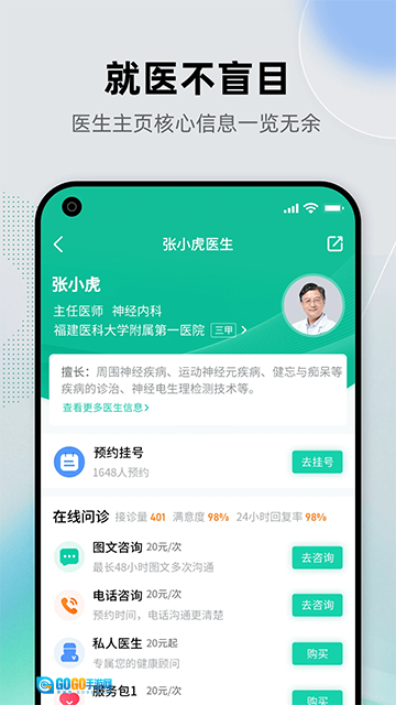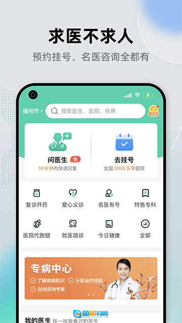 3、挂号:网络预约各大医院专家,提供短信停诊通知与医院现场接待等贴心服务;
