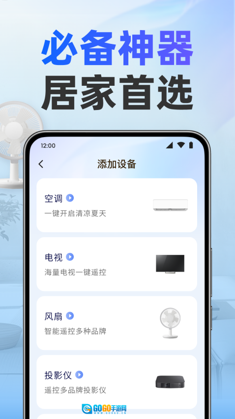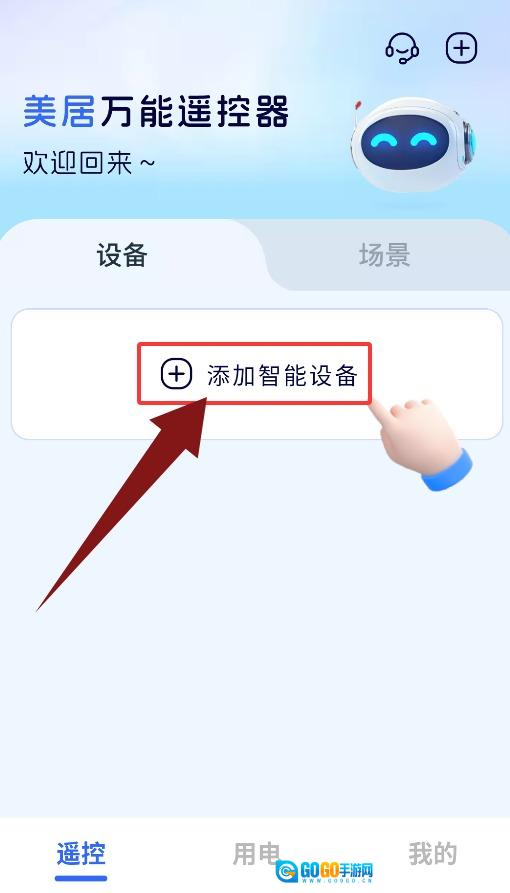2、在遥控界面中点击添加智能设备的选项,即可进入设备选择页面。