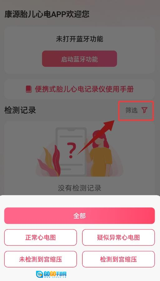 3、检测记录界面支持对全部、正常心电图、疑似异常等类型进行筛选。
