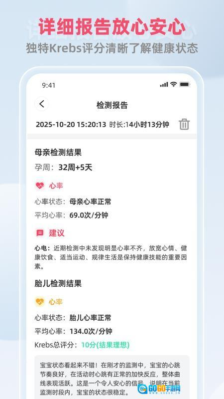 4、专业报告生成 每次监测完成后,系统会自动生成结构化检测报告,其中涵盖关键数据图表和简洁结论,便于孕妇向医生提供参考资料。
