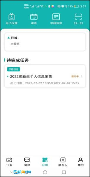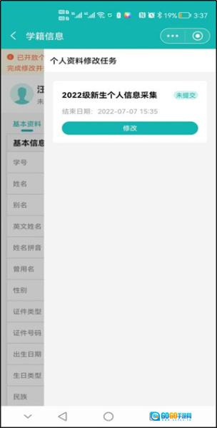 打开应用后,在待完成任务区域里找到“2022新生个人信息采集”这一项,点击进入即可进行修改操作。