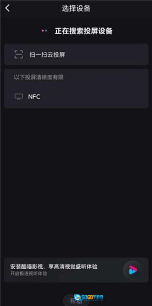 3、进入投屏界面后,稍等片刻让设备完成搜索,之后在搜索结果里找到并选择你要连接投屏的设备即可。
