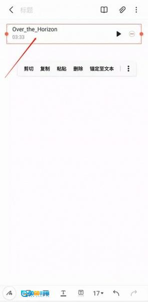 2、添加新笔记后点击右上角的回形针图标