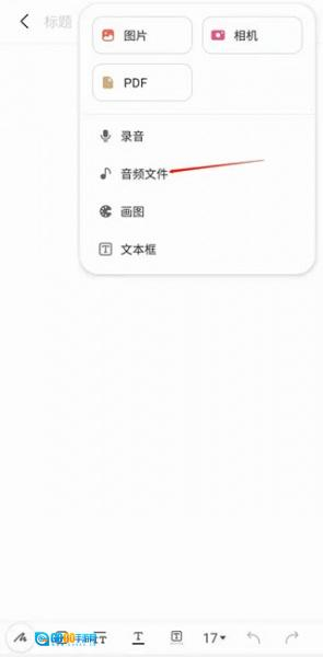 3、接着在下拉框中点击音频文件选项