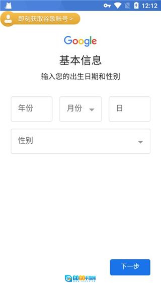 8、填写出生日期与性别时请注意,需选择年满18岁的成年年龄,填完后点击下一步。