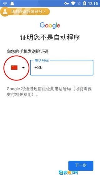 11、进行手机号验证时,国家需选择中国,接着填写本人的手机号,之后点击下一步;