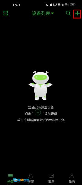 2、在右上角看到了一个“+”,点击它进入设备添加页面;