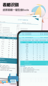智能识别表格文档,识别结果保存为 Excel格式,快速完成纸质报表单据的自动录入。