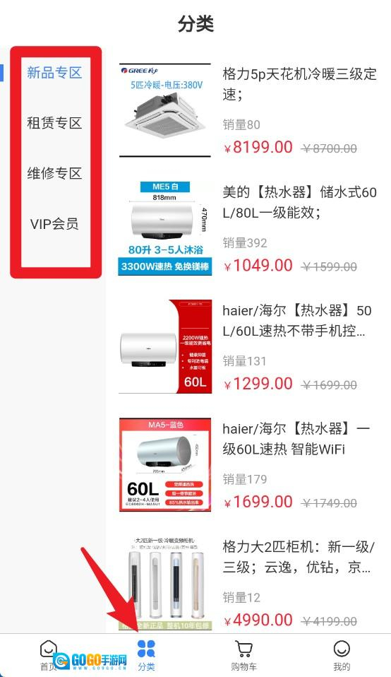 2、分类页面提供新品、租赁、维修和分类入口,快速查找各类商品和服务内容。