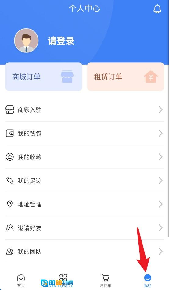 4、点击我的进入个人中心,可查看订单、钱包、收藏及足迹等常用账号管理功能。