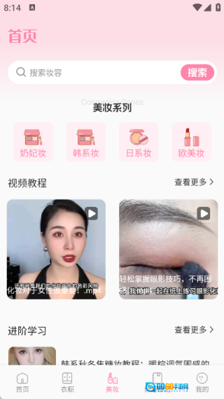 3、在美妆页面里,用户既能搜索各类妆容,也能够查看美妆系列的相关教程。