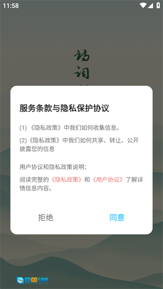 1、阅读并同意隐私政策和用户协议后,点击进入。
