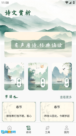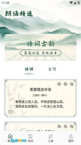 1、精心收录从《诗经》到明清时期的历代诗词经典之作,并搭配专业的朗诵音频,助力用户无论何时何地都能沉浸在古典文学独特的音韵韵味与深远意境之美里。