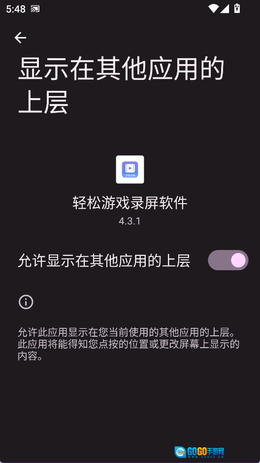 2、在弹出的列表里找到“轻松游戏录屏软件”并点击,开启里面的选项