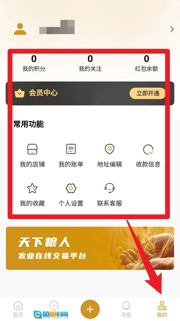 2. 登录后点击右下角我的,可查看积分、关注、店铺、账单、地址等基础信息。