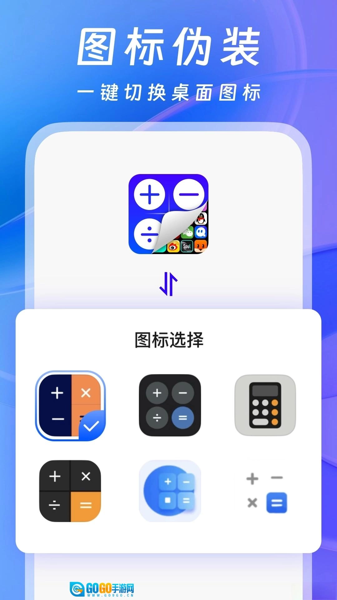 深度图标伪装:提供数十种桌面图标模板,一键替换应用图标与名称,隐藏后的应用伪装成计算器、天气等日常工具,隐蔽性极强。
