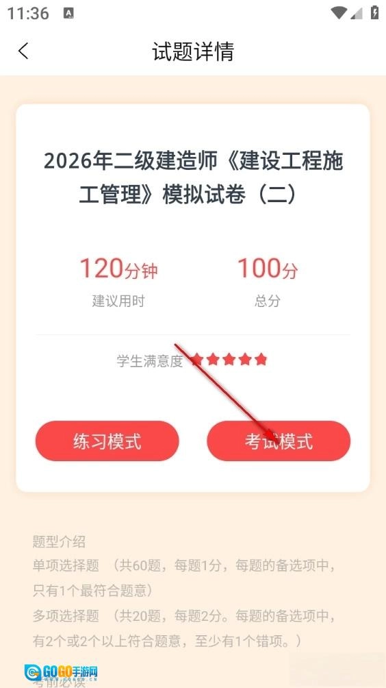 3、然后再点击考试模式