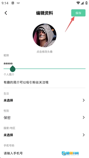5、以修改昵称为例,完成修改,点击屏幕右上角“保存”。