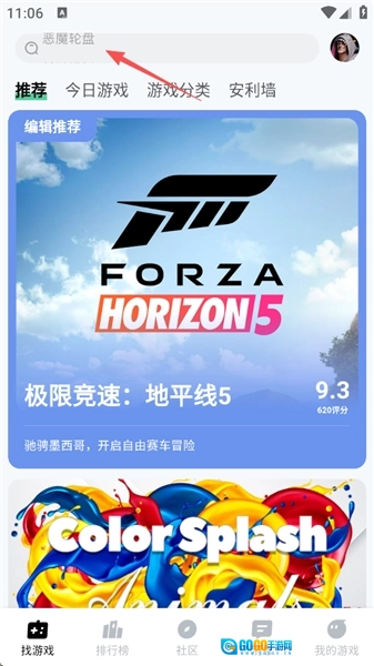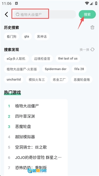 2、在屏幕上方输入自己想要游玩的游戏名称,随后点击屏幕右上角的“搜索”。