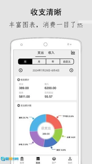 4、强大的统计功能,定期生成的报表帮助用户清晰了解月度与年度的财务状况,帮助评估支出与收入的平衡。