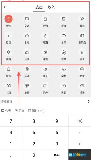 2、在首页,用户可以根据需要快速添加收支明细,选择不同的记账类别,简洁的操作方式帮助快速记录,确保不会遗漏每一笔消费。