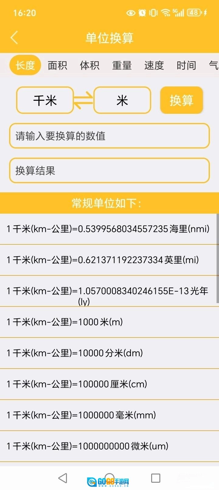 【单位换算功能】可实现长度、面积、体积、温度、速度、时间、重量等多种单位的转换。