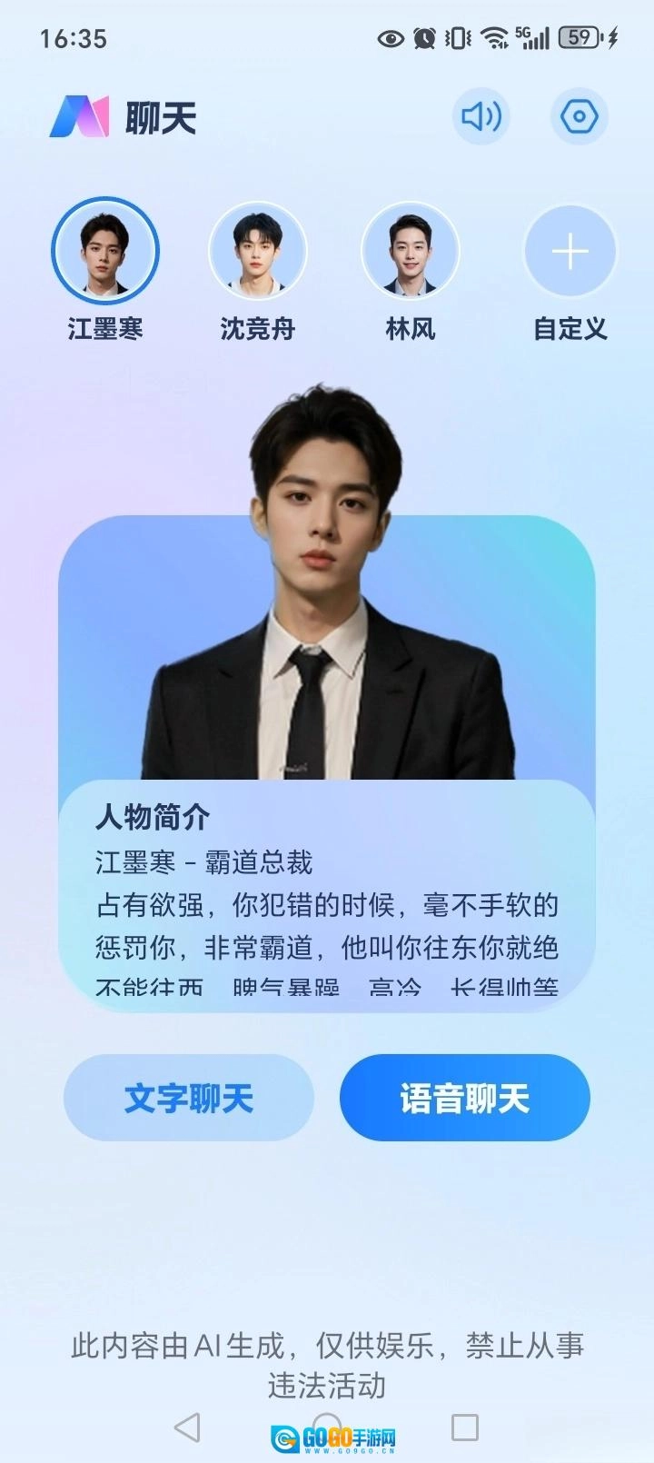 -角色扮演:这里准备了多款不同类型的角色供你挑选,包括温柔学长、霸气总裁、甜美少女和知性姐姐等。