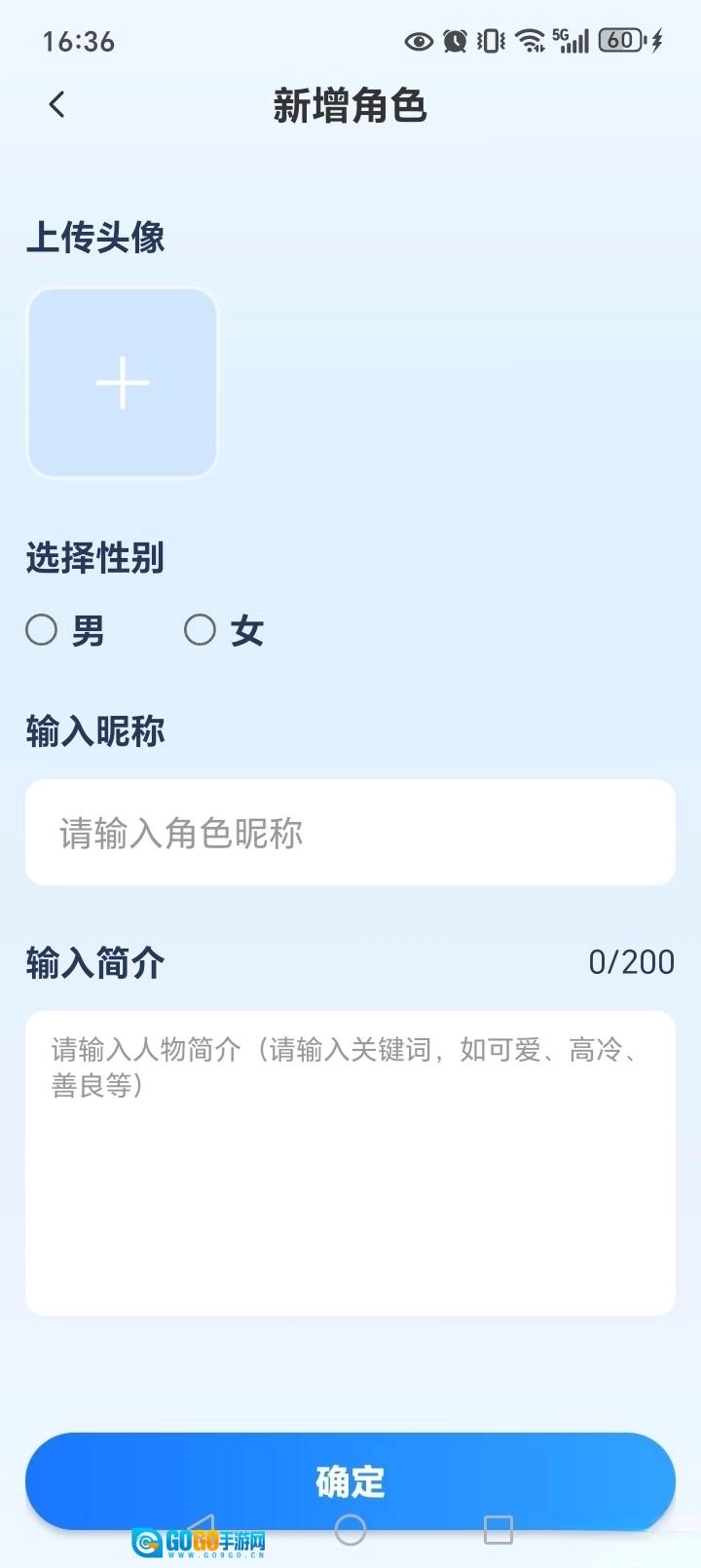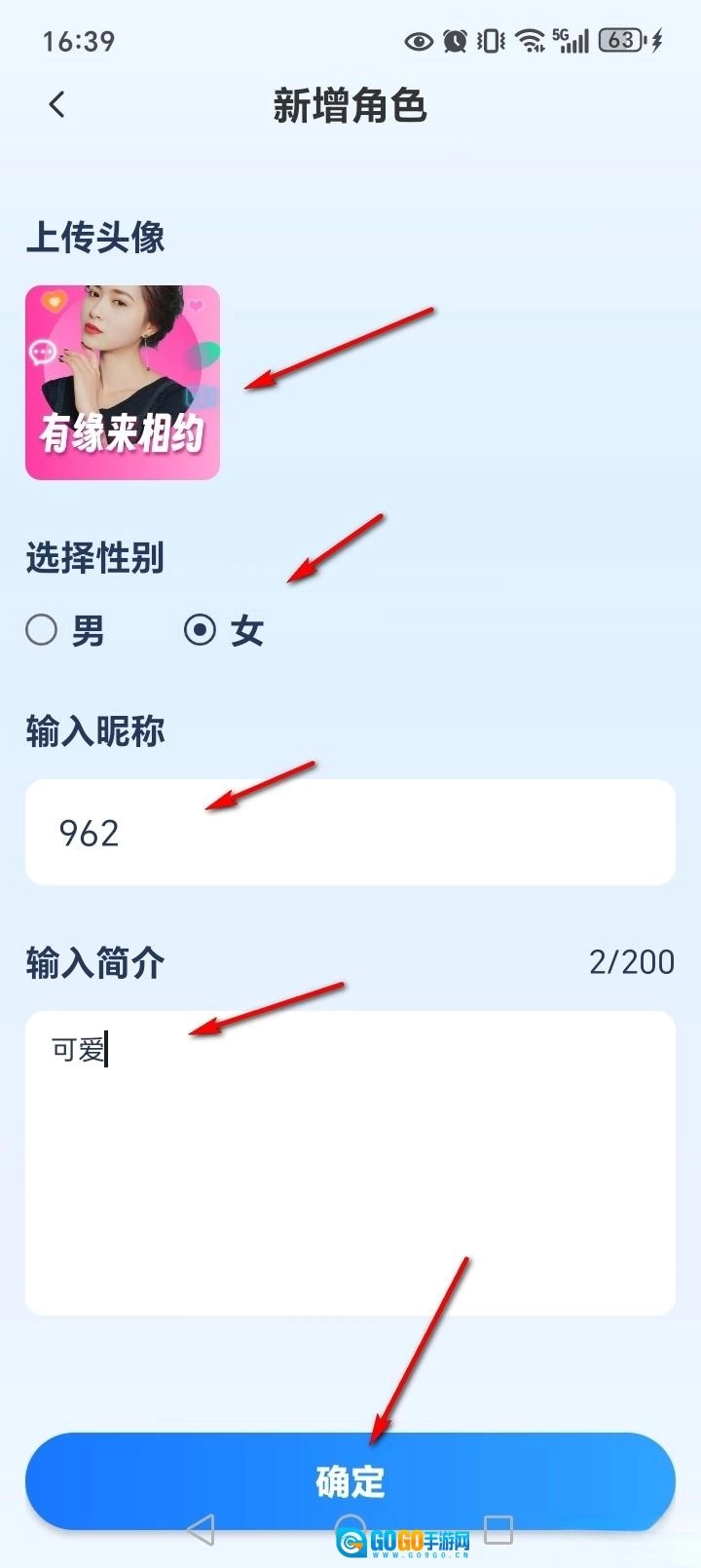 上传头像,选择性别,填写昵称,撰写简介,点击【确定】按钮