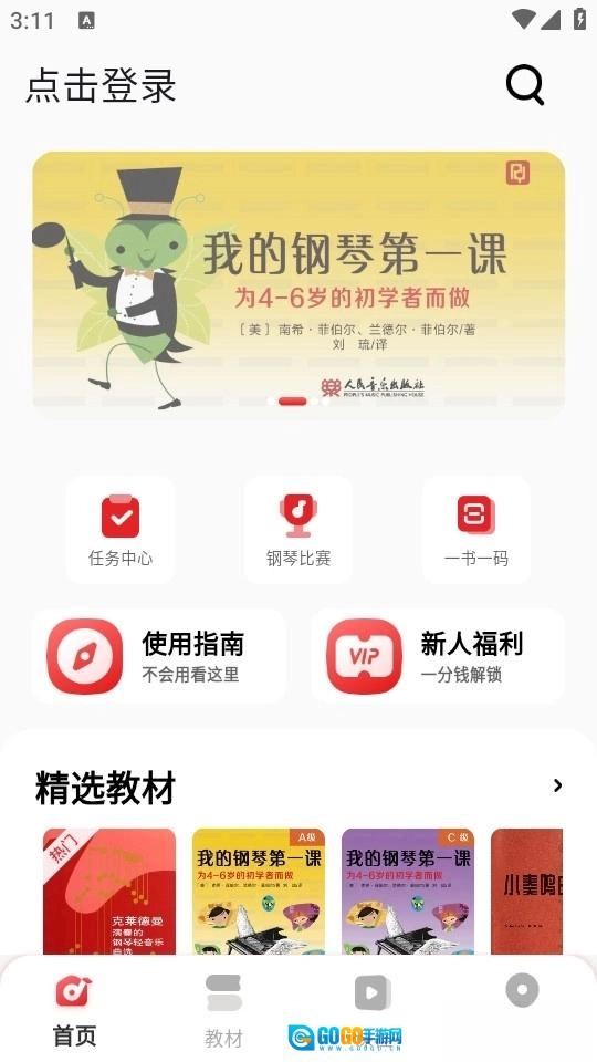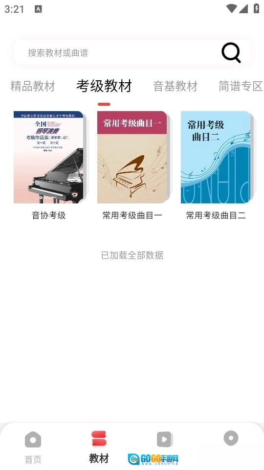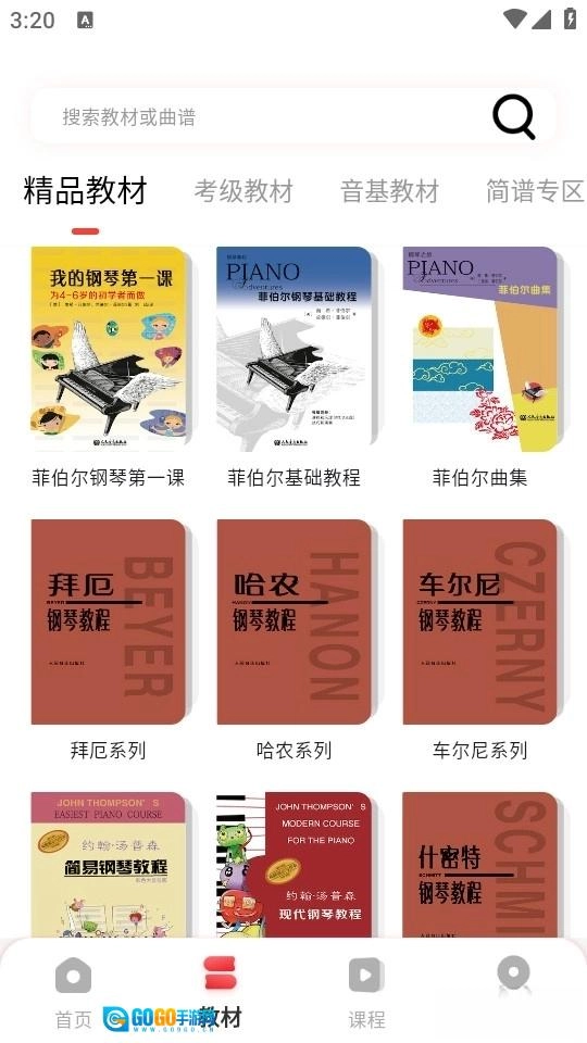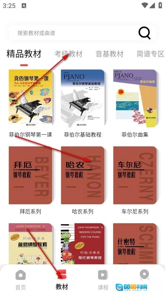 点击下方教材区域就能查看钢琴曲目教材以及各类练琴资料,用户可以自主挑选适合自己学习的教材。