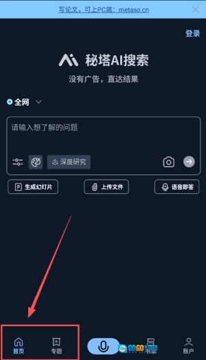 1、首先找到秘塔AI搜索App并完成安装,注册账户后就能进入主界面,操作简单易懂,新用户可以很快上手。