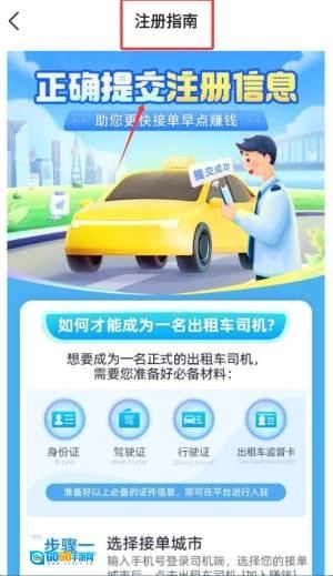你可以前往帮助中心查看详细的注册指引,从而知晓成为平台司机需要准备的材料清单以及对应的审核标准。