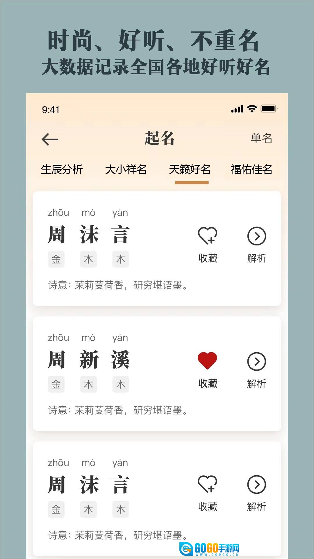拥有名字参考资料和测试工具,借助专业评估助力用户挑选出更适宜的名字。