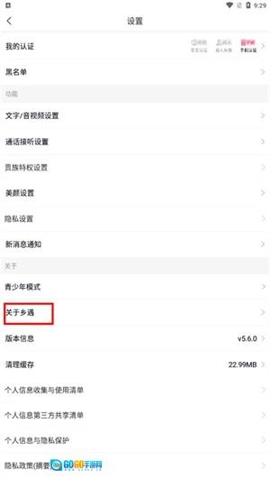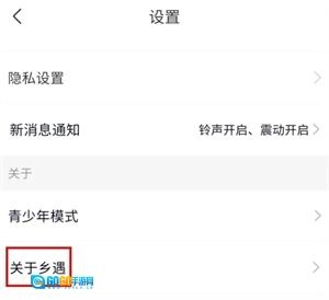 在设置页面中点击关于乡遇按钮;