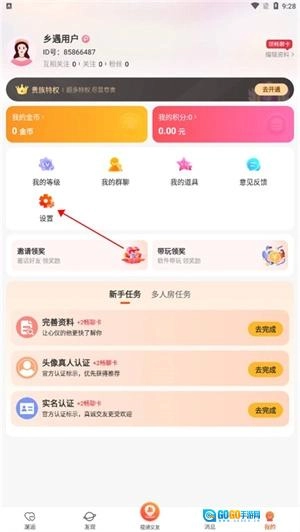打开手机上的乡遇,点击右下角我的进去。