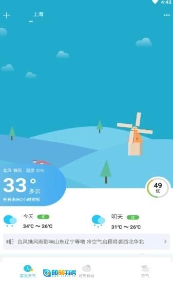 界面设计简约大方又不失美感,天气的实时动态都能轻松掌握,帮助2265用户提前规划好出行安排。