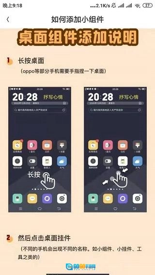 那么要怎么在桌面添加自己的拉屎小组件呢?首先得长按桌面,要是OPPO手机的话,得用手指捏一下桌面才行。