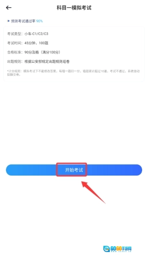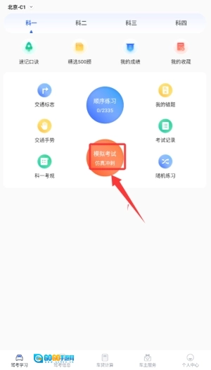 在启动驾考模拟科目一程序后,于首页的功能栏中找到并点击“模拟考试”选项,随后即可进入测试准备界面。