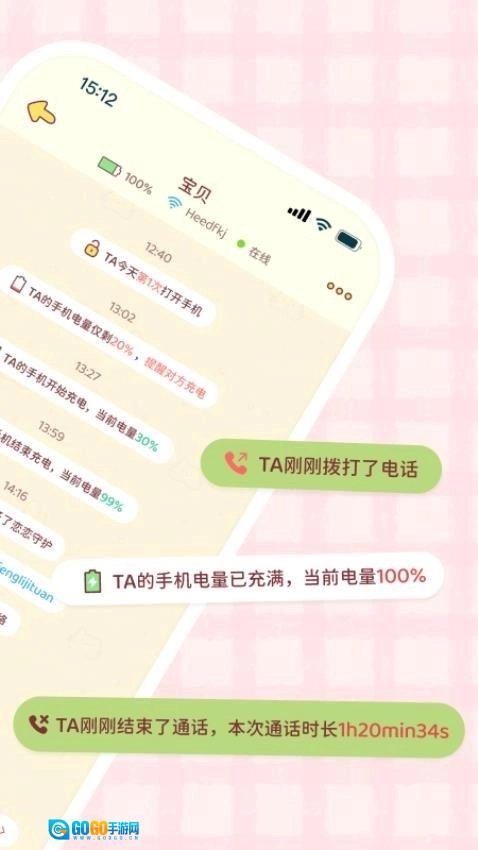 智能行程报备功能:可实时共享位置信息,监测手机状态数据,并支持自定义报备提醒设置,帮助伴侣随时掌握你的动态。