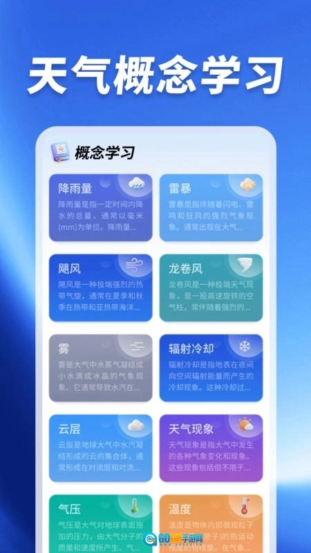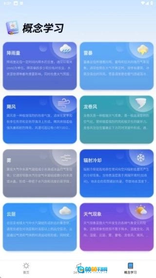 概念学习页面所汇聚的内容聚焦于气象知识,能让阅读体验更为直观。