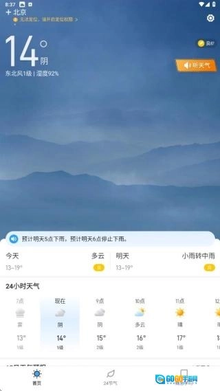 首页全面呈现了你所关注城市的天气状况,既包含当日24小时的实时天气信息,也提供了未来数天的天气预报数据。