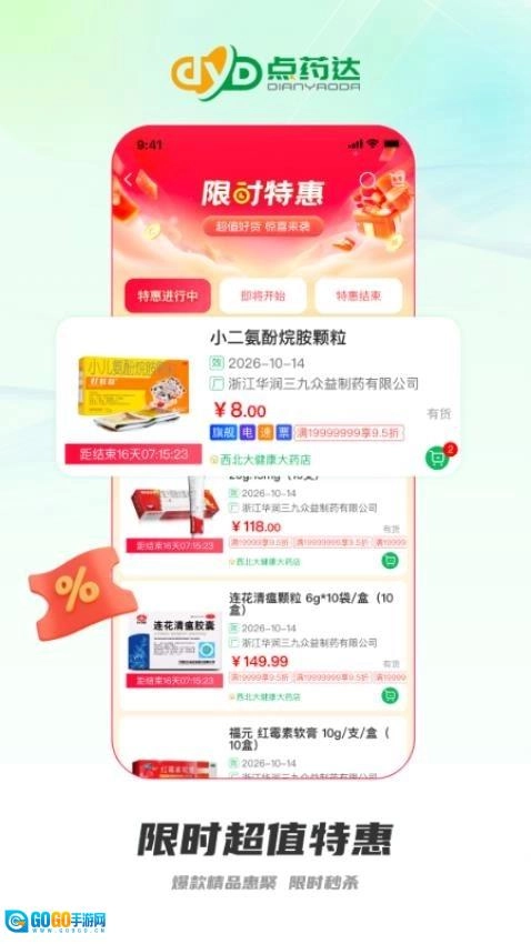 限时特惠活动开启:每日上新热门药品折扣专区,可设置到货提醒,让您不错过每一次优惠时机。