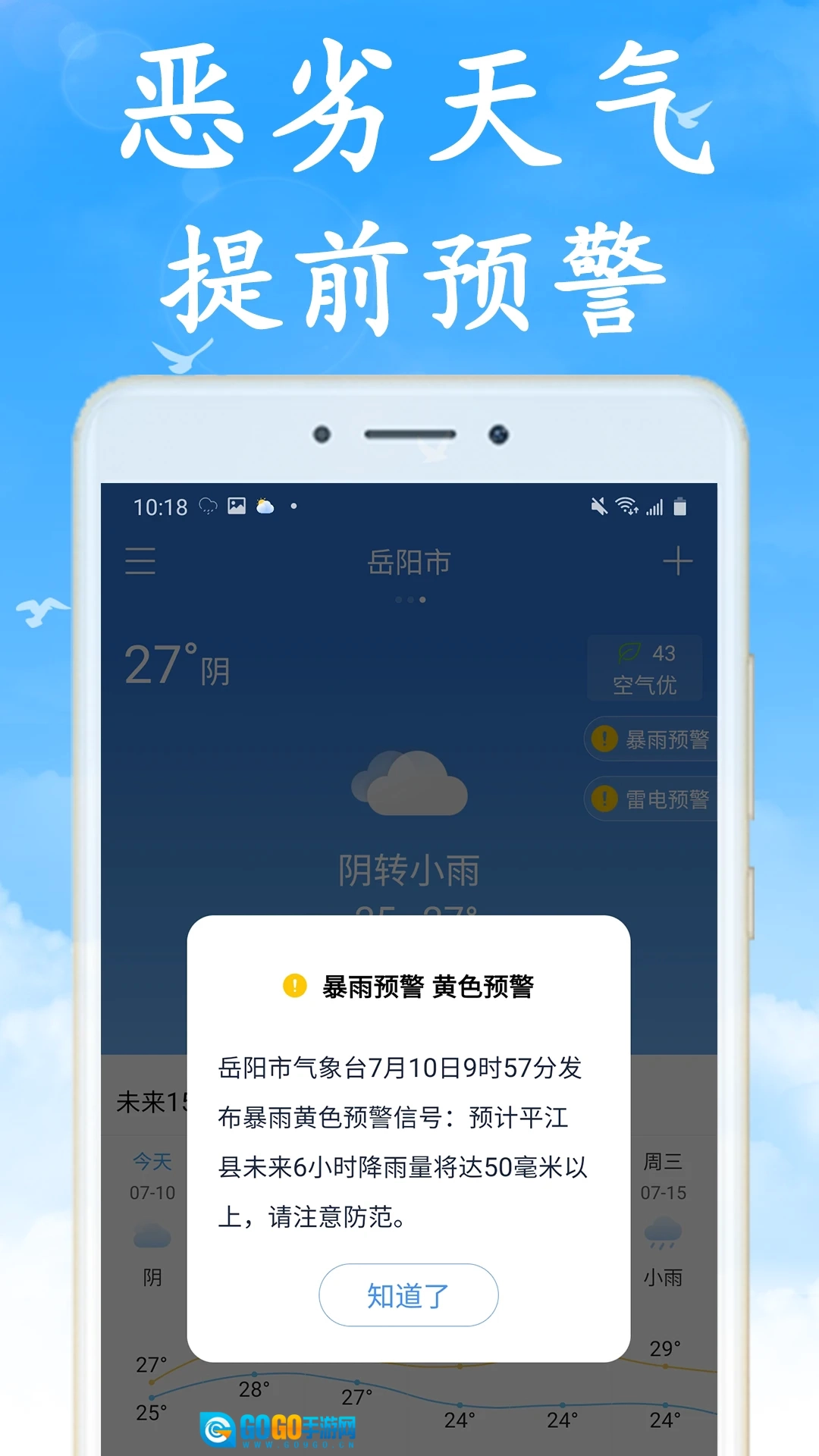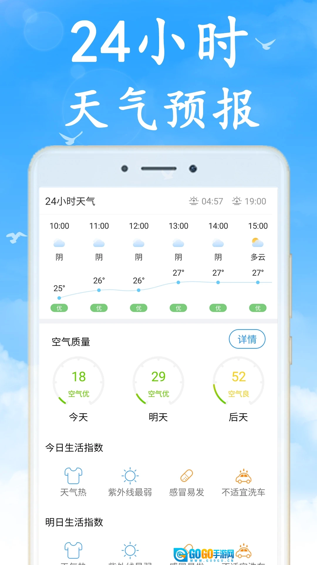 天气预报信息准确又全面,能实时提供分钟级预报,帮您精准掌握:几分钟后会下雨?几分钟后雨会停?几分钟后适合出门?还能精准预测未来24小时、72小时,以及7天、10天、15天的天气情况;气压、湿度、能见度等数据,更是户外钓鱼的实用小助手!此外,空气质量、空气污染指数、温度变化趋势、PM2.5、空气质量指数等丰富信息,让您出行更轻松,不再惧怕雾霾。同时提供穿衣、紫外线、感冒、洗车等生活指数,实时更新预报,贴心守护您的美好生活!
