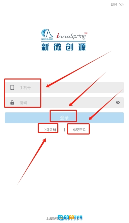 打开软件进入登录页面,输入已注册的手机号和密码后点击登录按钮即可进入主界面。