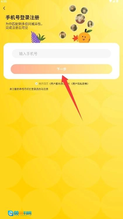 进入登录界面后输入手机号,勾选同意相关协议,接着点击下一步输入验证码,即可完成注册。