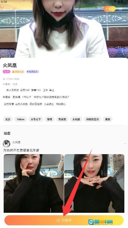 进入用户资料页面查看详细信息,点击打招呼功能就能开启私信对话功能。